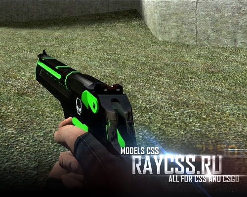 Вроде очень круто смотрится этот deagle для css. Красиво сочетается черно-зеленый окраски и при этом хорошая текстура! Помимо раскраски, на моделе красивый черепок.